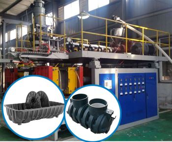 中空机适合生产从1L—10000L的塑料瓶、桶、罐、工具箱包、异型中空件、汽车油箱、托盘等中空制品。根据需要可配置单模头、双模头和多模头;以及单层、双层、多层模头,也可以根据需要提供个性化产品。